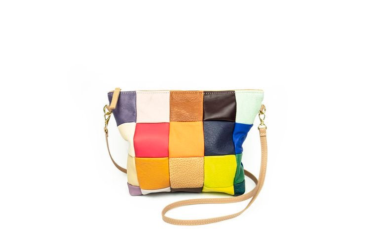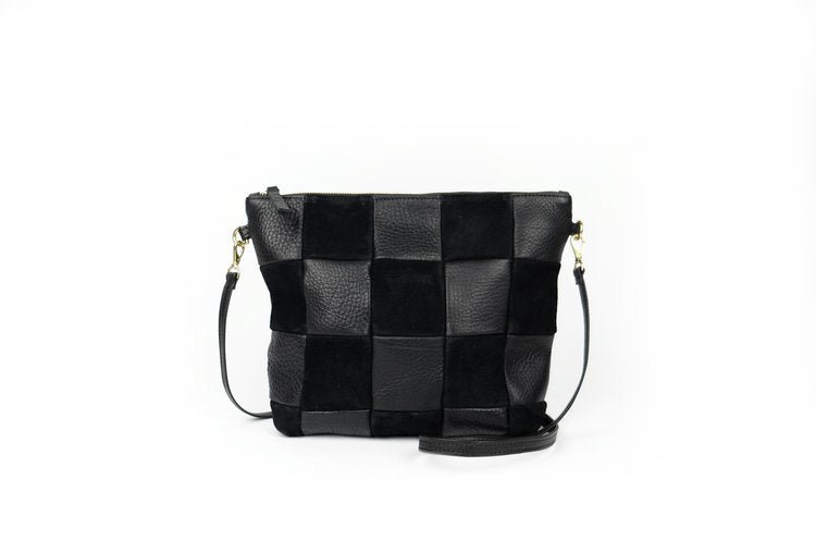 - Leather and suede checkered exterior on both sides