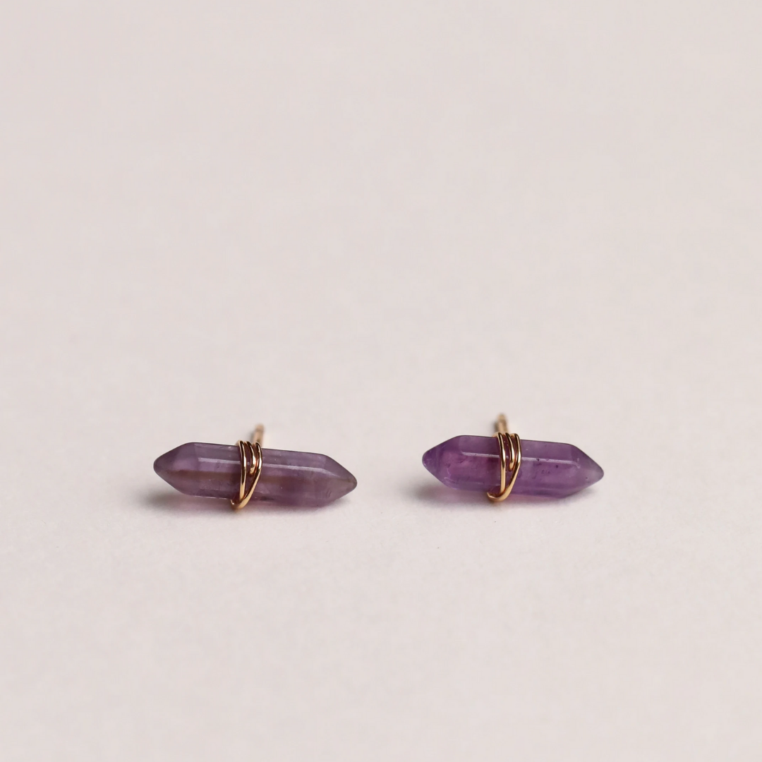 Natural gemstone studs wrapped in 18k gold-plate over sterling silver wire.